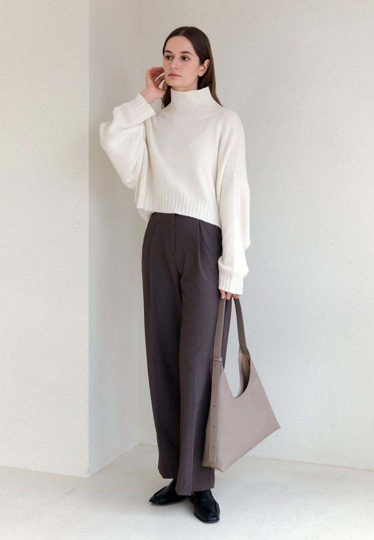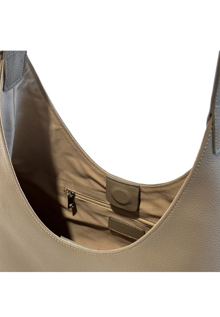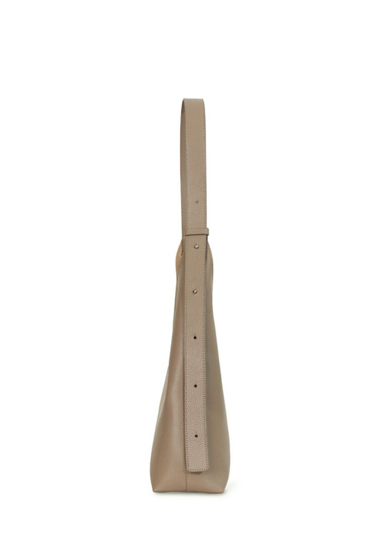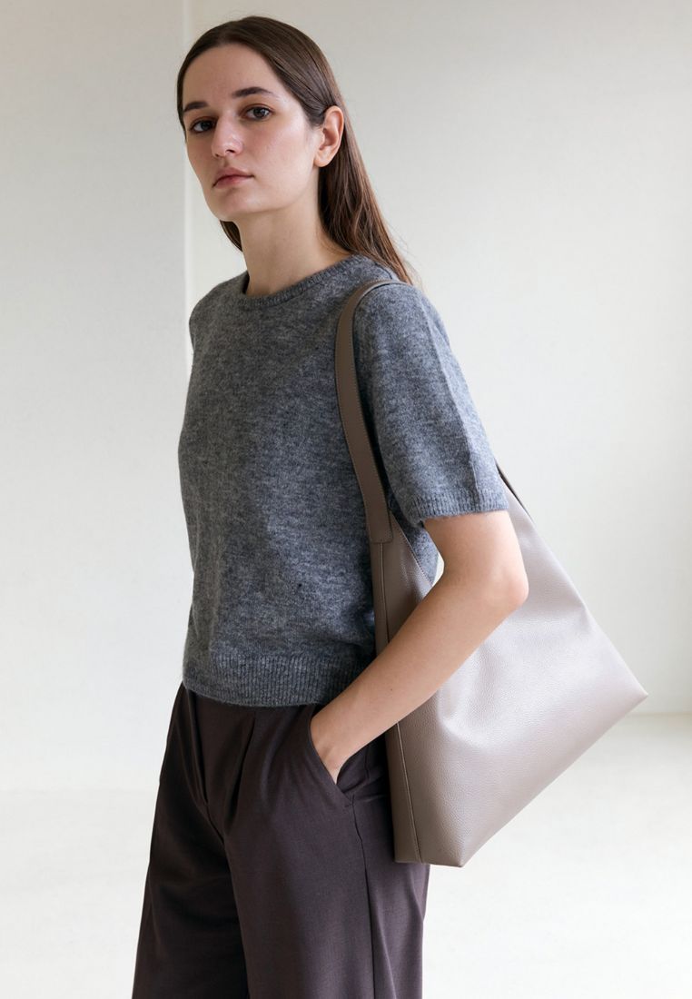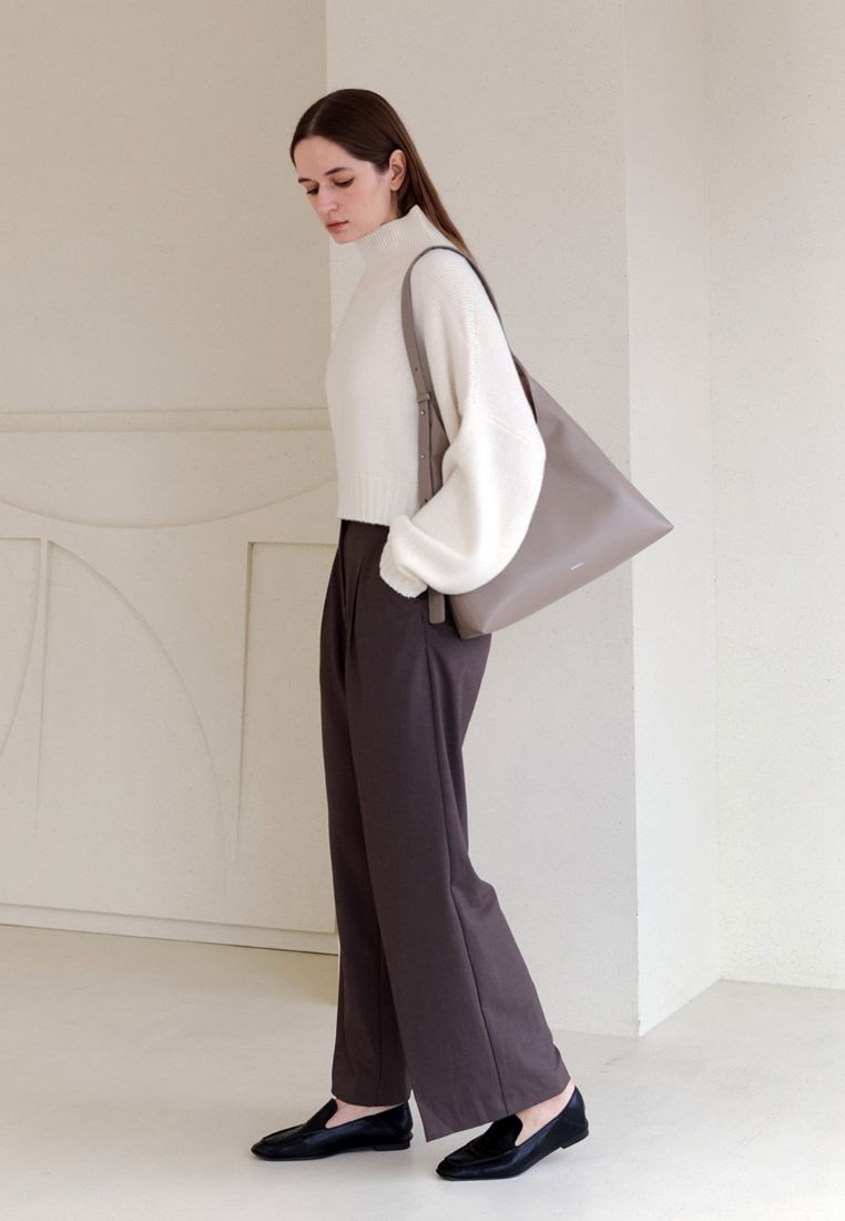 This shoulder bag has a simple yet chic design that combines straight and curved lines in a triangular silhouette.