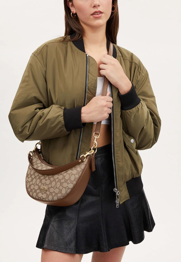 Aria Shoulder Bag In Signature Jacquard Khaki Saddle Multi