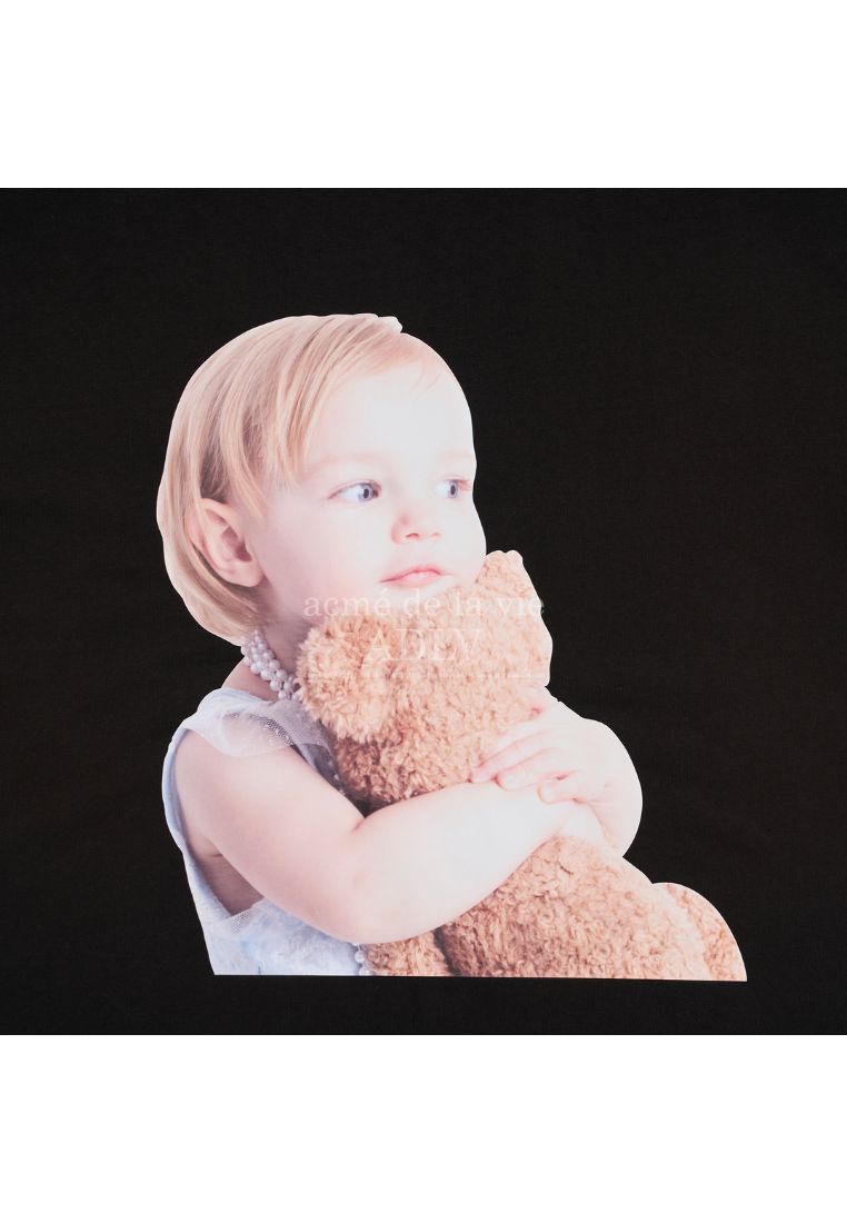 Baby Face Pearl Necklace Girl Short Sleeve T-Shirt Black