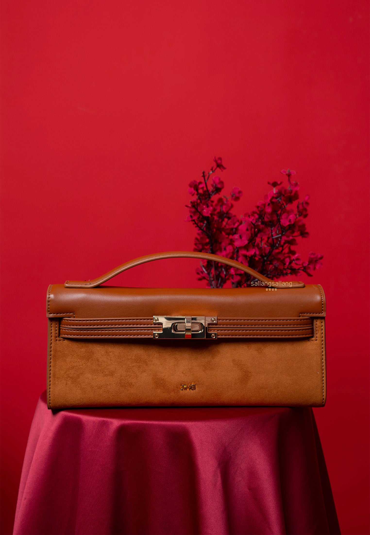 Bria Faux Suede Structured Top Handle Bag - Brown