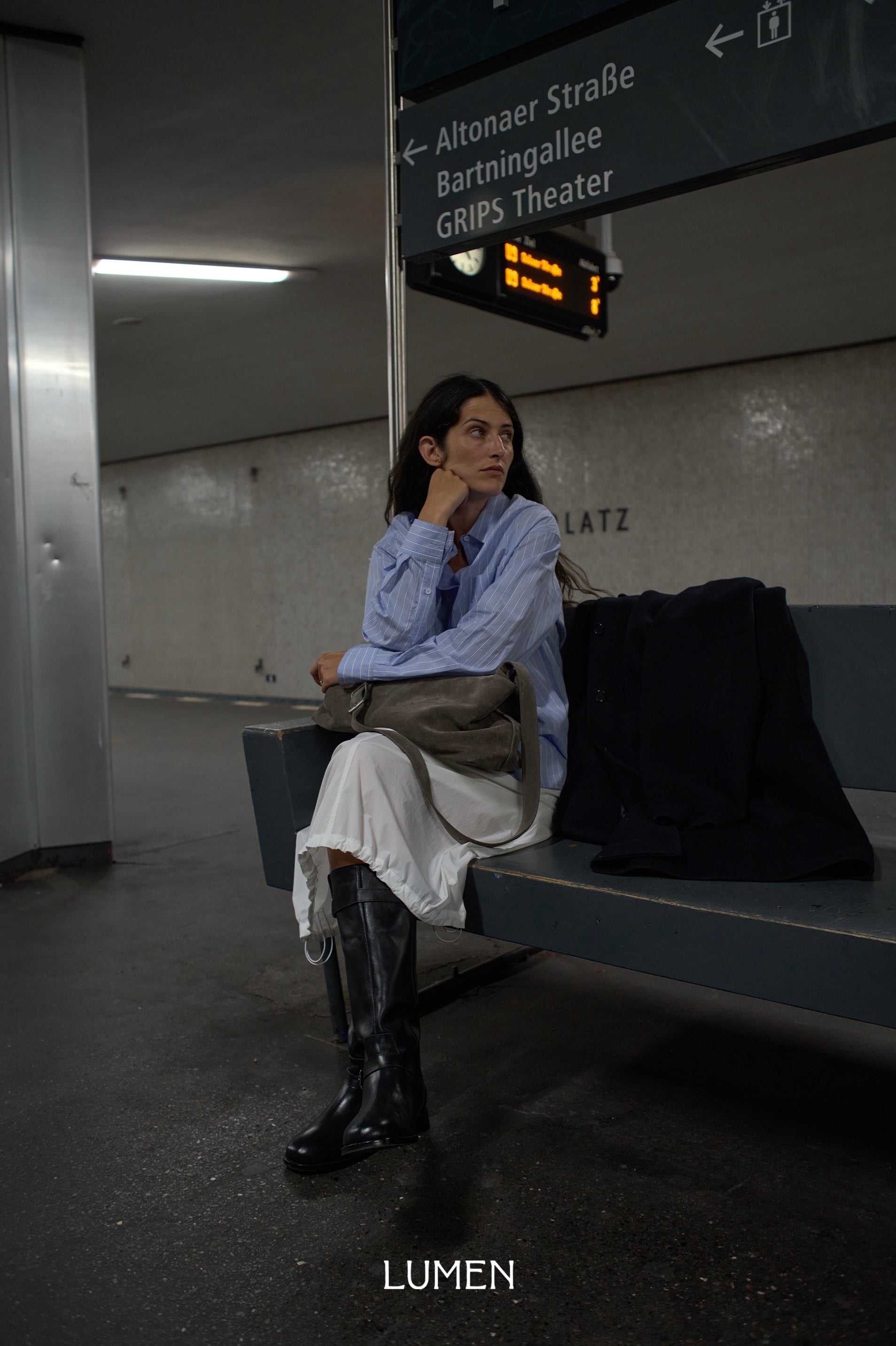 The Brise bag stands out with its sleek silhouette and practical size. "Brise" means "wind" in French, and true to its name, it's crafted from soft, flowing leather. A single buckle strap adds a casual vibe, and the adjustable length allows for a variety of styles, from tote to shoulder bag to crossbody. An adjustable interior strap allows for customization, and a magnetic closure completes the flowing silhouette. A central zipper pocket divides the main compartment into two, creating three separate compartments for ample storage despite its compact size. The sleek silhouette created by the luxurious, supple leather, combined with a minimalist design through reduction and omission, offers enhanced practicality for everyday use. An optional extension strap, available for an additional fee, extends the length of the original strap, allowing for a variety of styling options and is designed to be comfortable for men as well.
