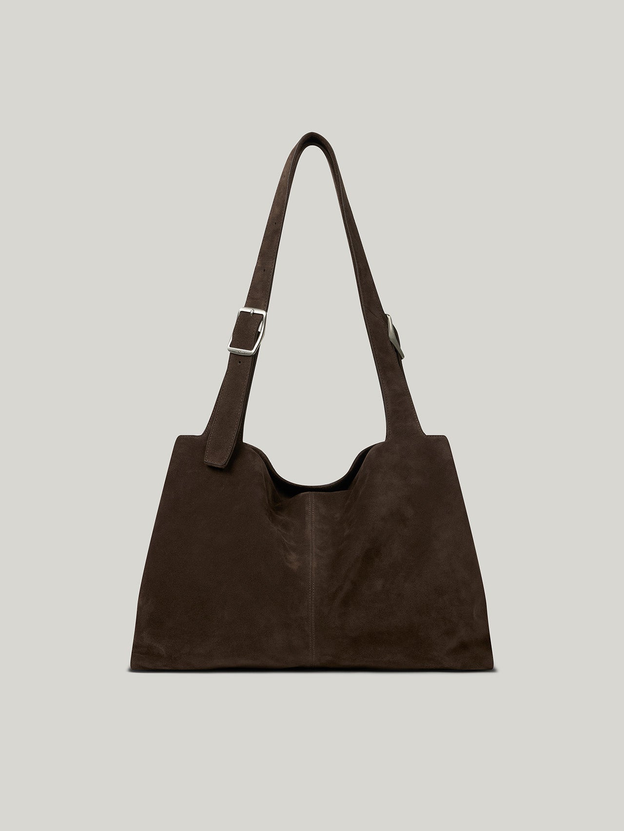 The Brise Grande bag stands out with its flowing silhouette and generous size. "Brise" means "wind" in French, and true to its name, it's crafted from soft, flowing leather. Two buckle straps on either side add a casual touch, and the adjustable length allows for versatile use as both a tote and a shoulder bag. An adjustable interior strap allows for customization, and a magnetic closure completes the flowing silhouette. A central zipper pocket divides the main pockets on either side, creating three separate compartments that offer practicality beyond mere roominess. Experience the elegant silhouette created by luxurious, supple leather, complemented by its contrasting everyday practicality, all in one piece.