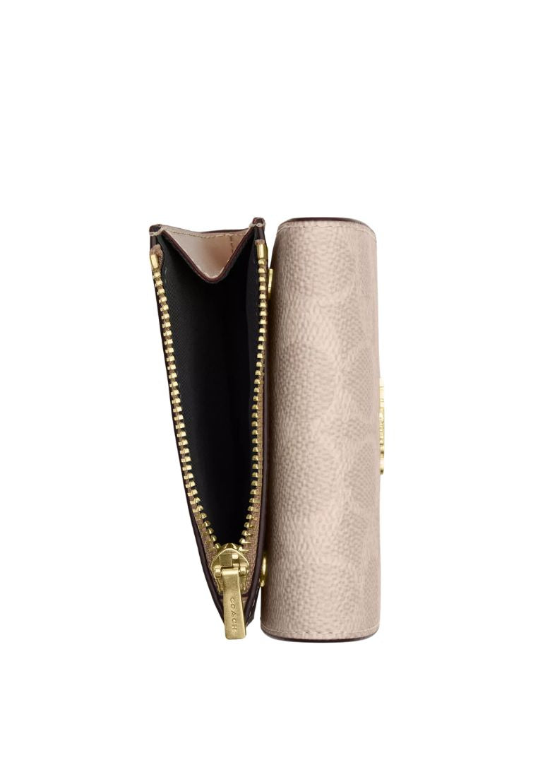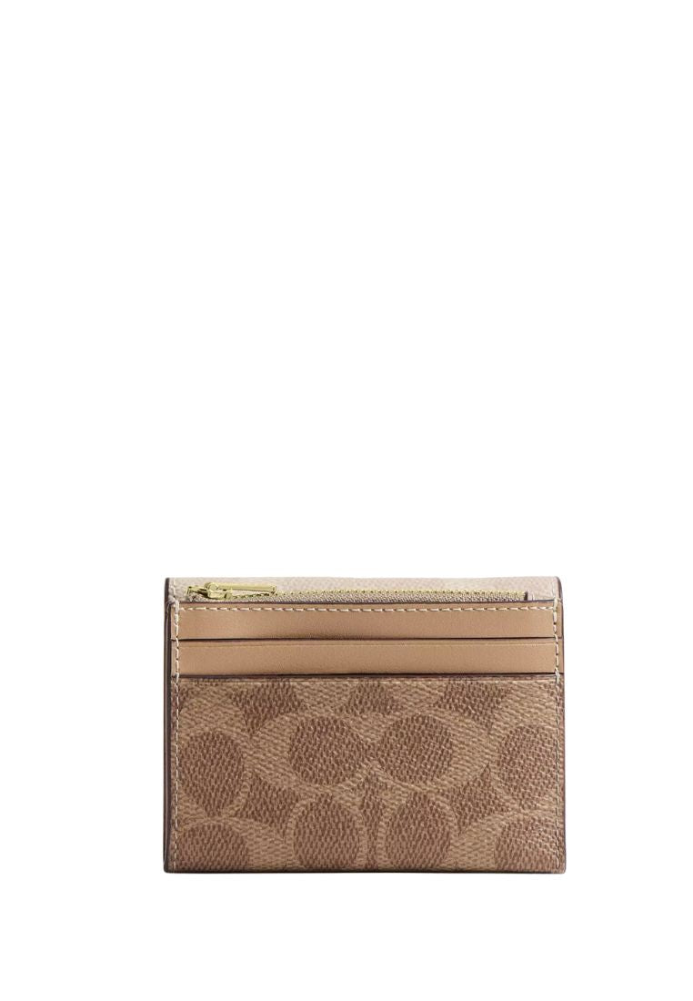 Card Holder Wallet In Blocked Signature Canvas Gold Sand Tan