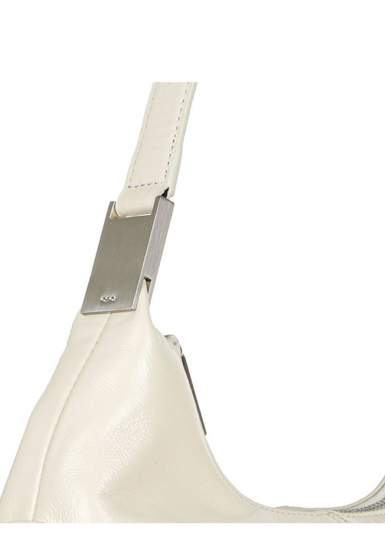 This is a point-style hobo bag from the BROCLE series with a soft, relaxed silhouette. The voluminous shape continues from the entrance to the bottom, and the BAU hardware, the signature element of Osoi, has been reinterpreted with a delicate, elongated strap for a more feminine look.