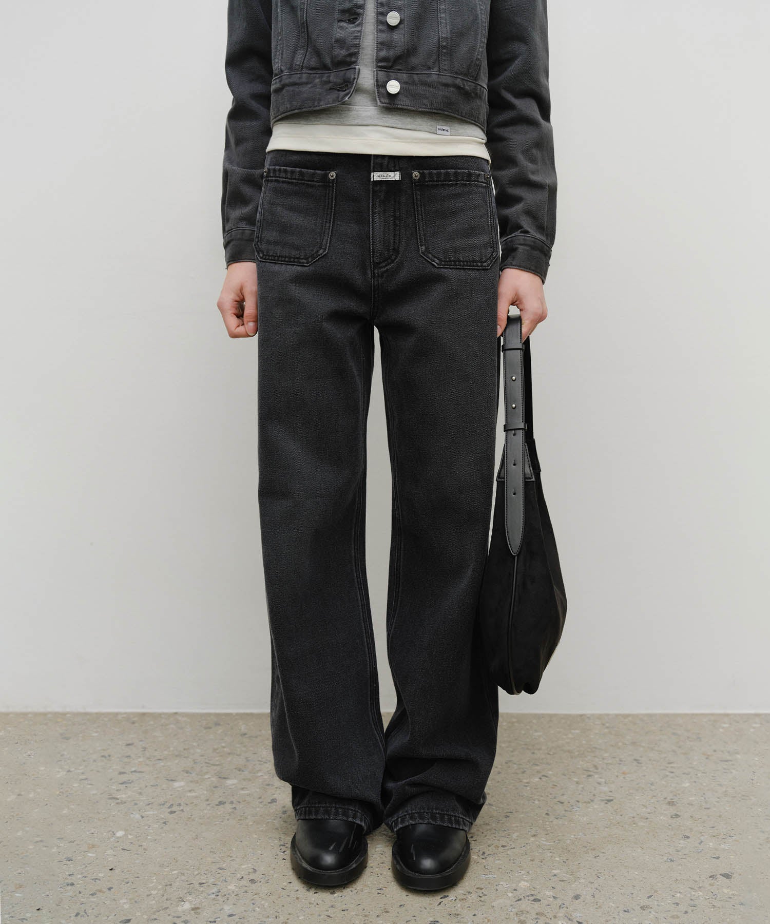 CLASSIC LOGO ROUND SUEDE SHOULDER BAG black