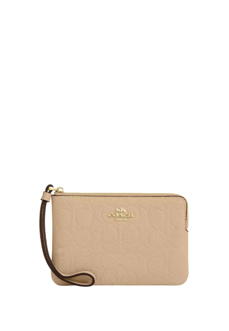 Corner Zip Wristlet In Signature Leather Gold Oat