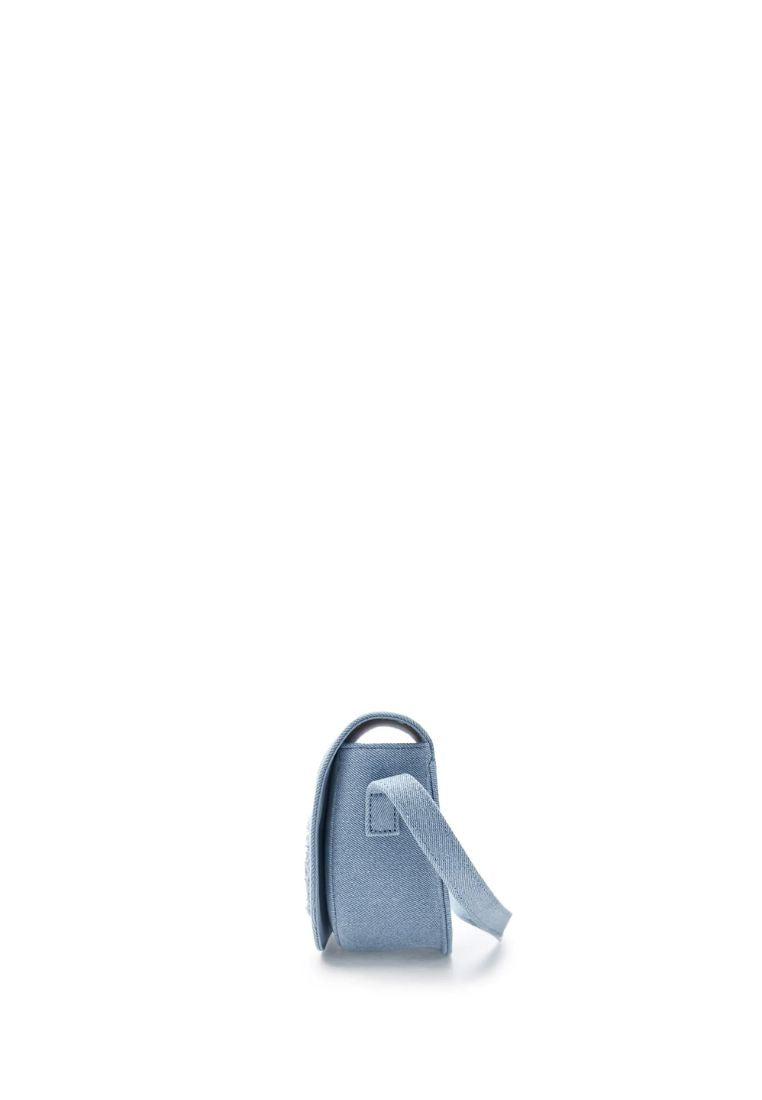 A mini crossbody bag that can hold small items such as a cell phone (for iPhone 15 Pro), cushion, lipstick, etc. Made entirely of denim, with partial damage for a casual look. A logo accent is created with a volume patch using lettering. (Be sure to note that real denim is used, so there may be slight differences in tone due to washing.)