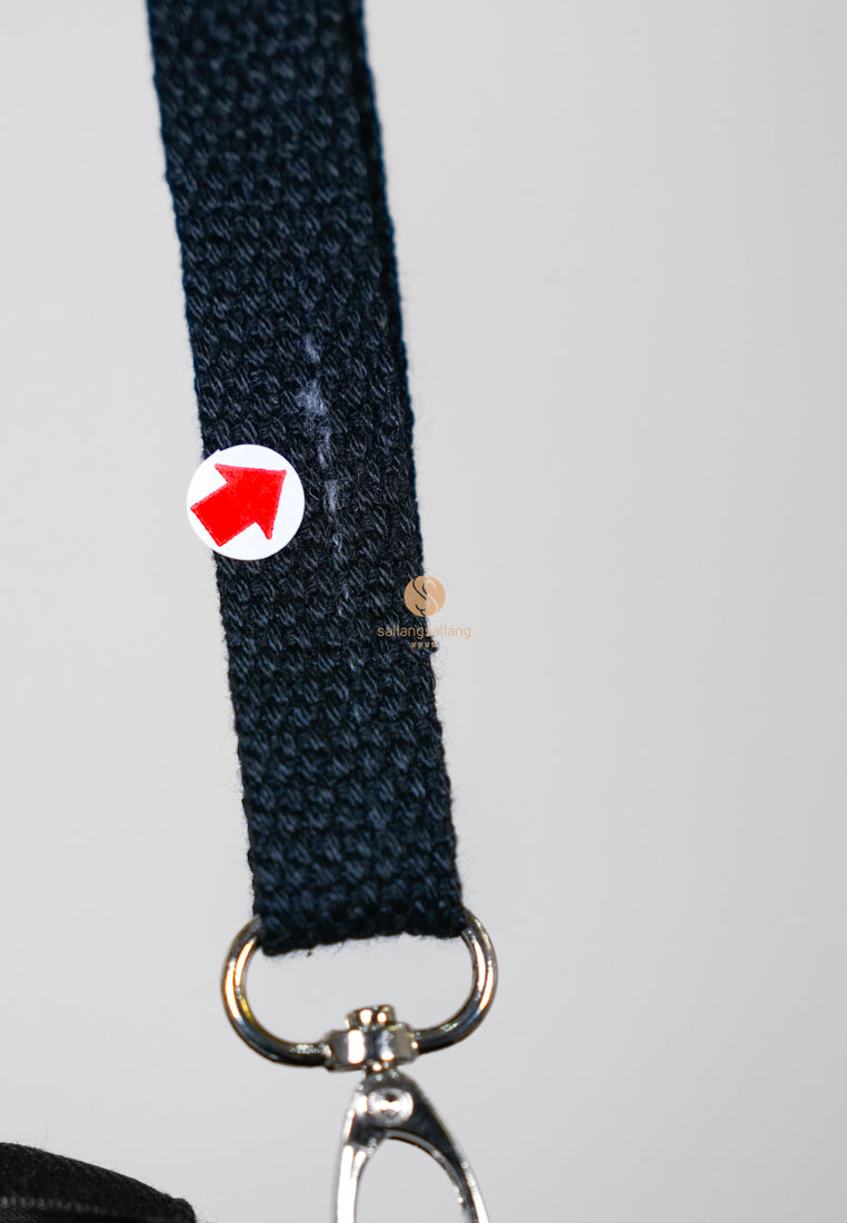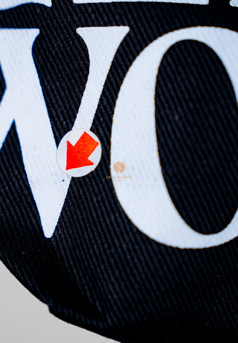 sablon mengelupas sedikit di huruf M dan W, dan ada benang putih di strap panjang