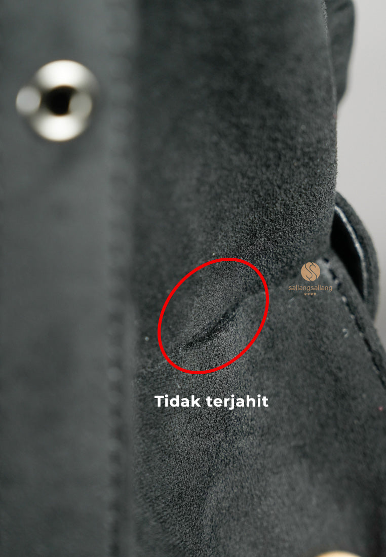 Keterangan defect: kantong kiri tidak terjahit