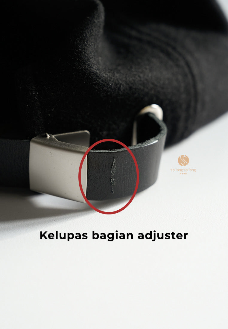 Keterangan defect: ada bagian yang mengelupas di strap adjustable topi belakang