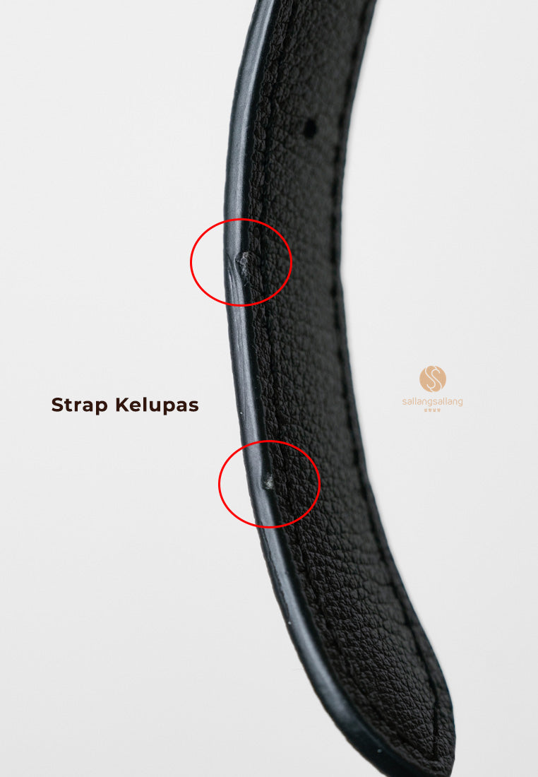 Keterangan defect: pinggir strap terkelupas