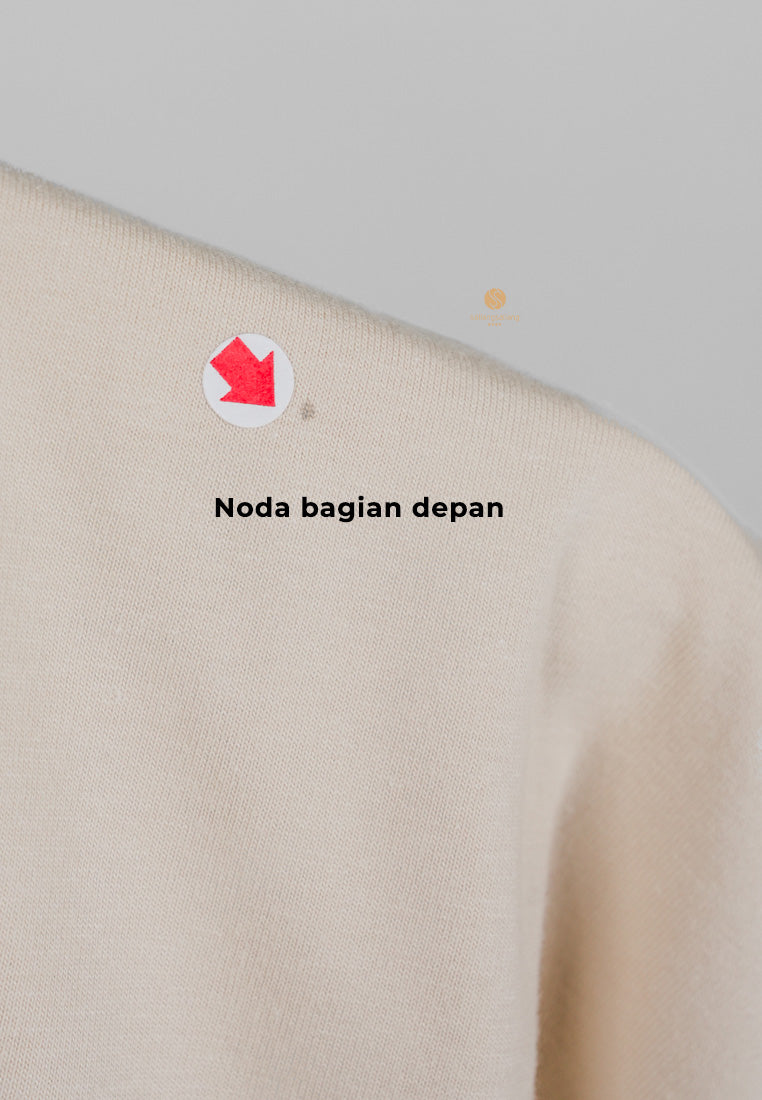 Keterangan defect: ada noda kecil di bagian depan atas baju