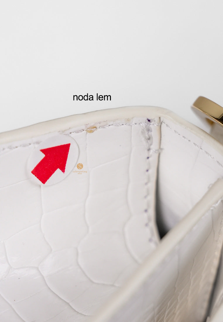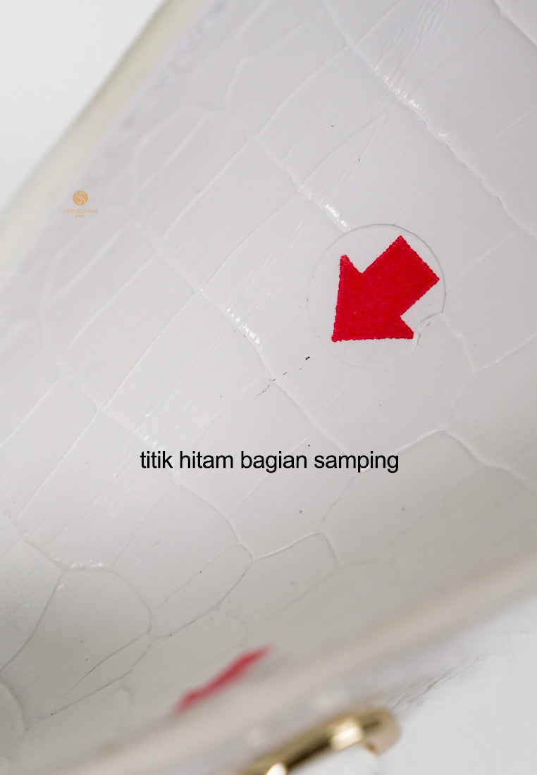 Keterangan defect: ada titik hitam dibagian samping tas & noda lem