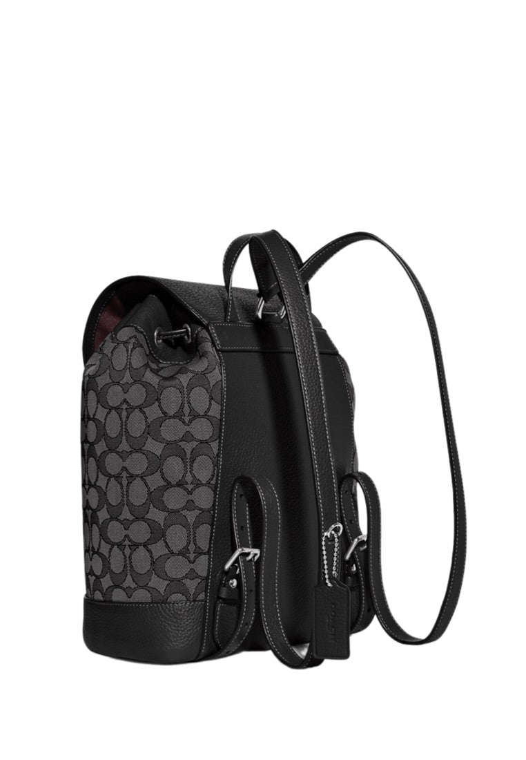 Dempsey Drawstring Backpack In Signature Jacquard With Coach Patch And Stripe Smoke Black Multi