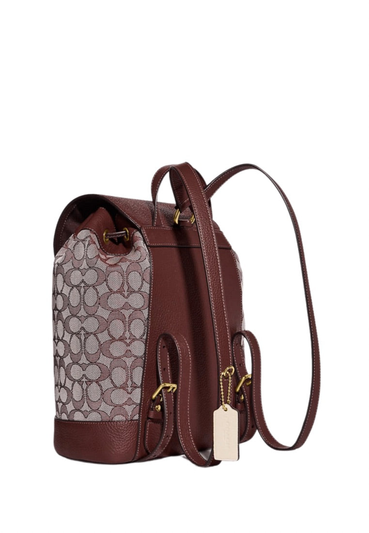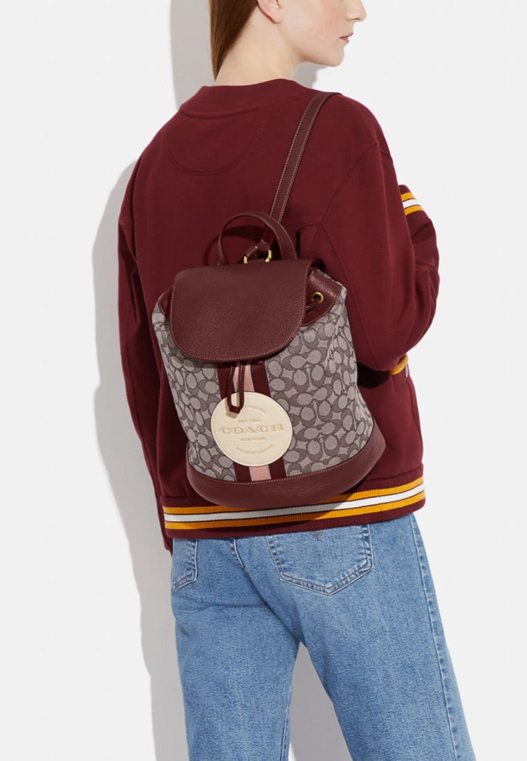 Dempsey Drawstring Backpack In Signature Jacquard With Coach Patch And Stripe Wine Multi