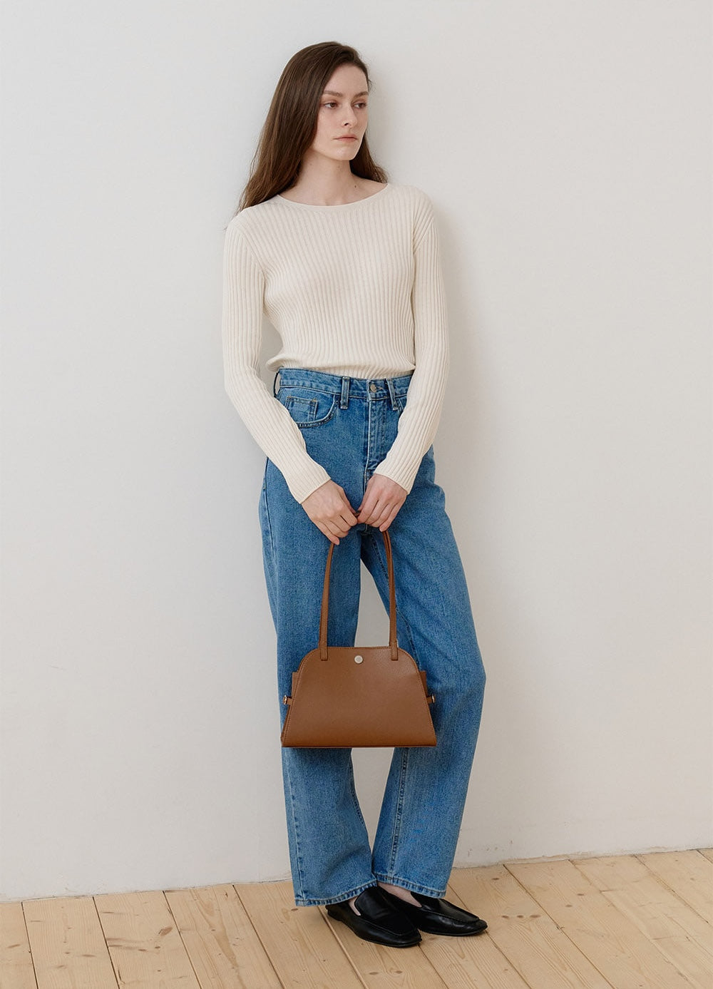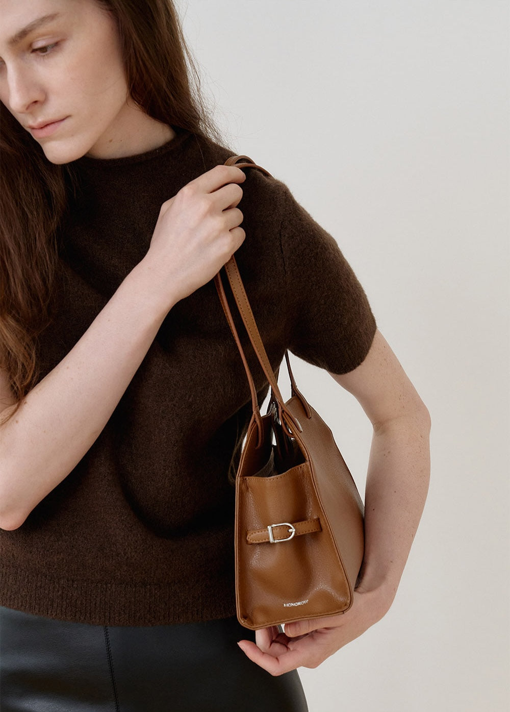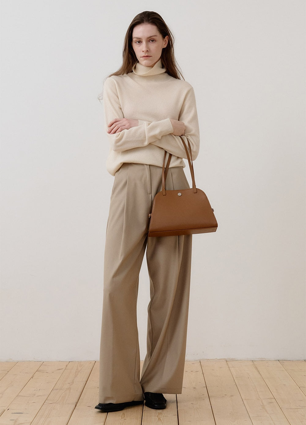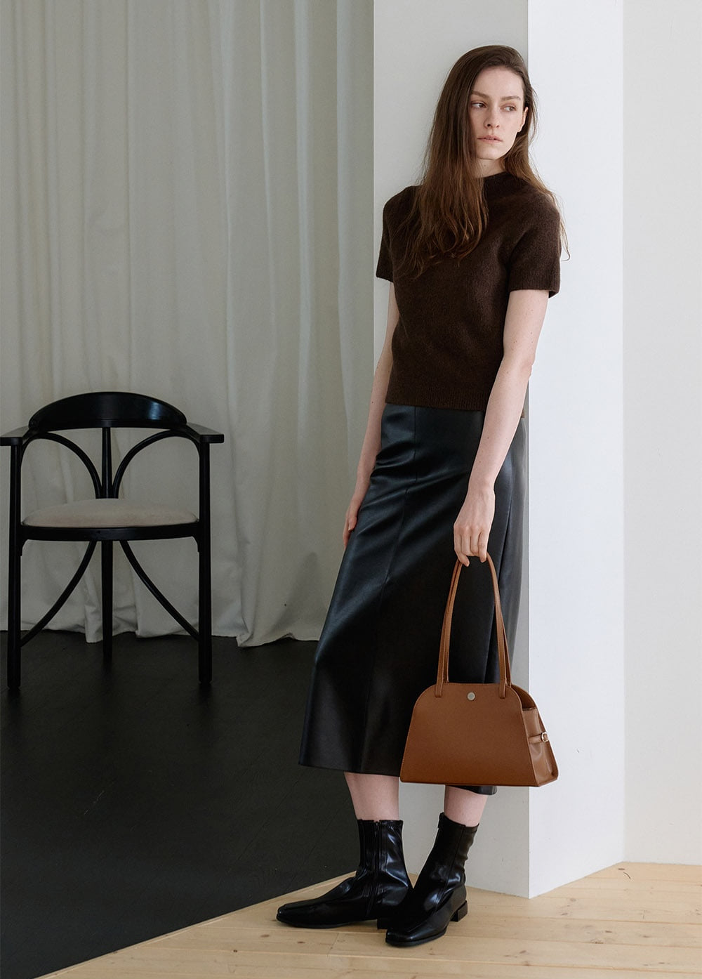 This is a sophisticated shoulder bag with a harmonious blend of soft curves and straight lines. Its basic design, combined with a comfortably long strap, enhances wearability, while minimal metal accents complete a sleek, polished look. The magnetic closure allows for easy and neat opening and closing, making it highly practical for everyday use.