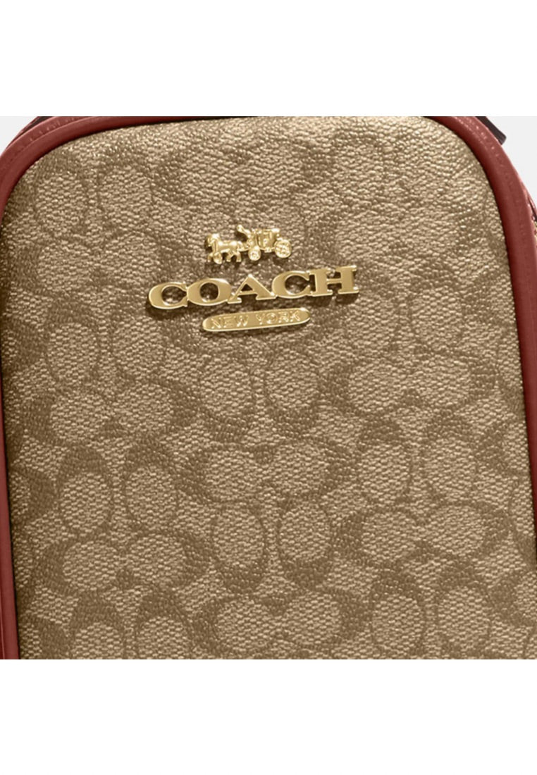 Eva Phone Crossbody In Colorblock Signature Canvas Khaki Terracotta