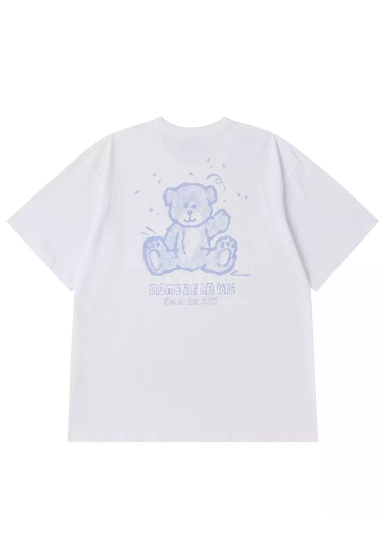 Hand Sketch Bear Short Sleeve T-Shirt White
