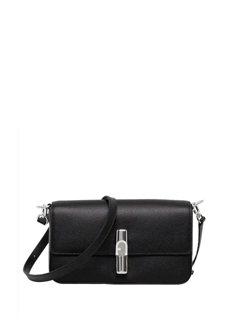 The shape of the Furla Iride crossbody is defined by its versatile, contemporary design. Its compact silhouette, in exquisite textured leather, features an adjustable and detachable shoulder strap for multiple styling options. Its magnetic closure is embellished with cylindrical metal hardware, finished with the iconic Furla Arch logo.