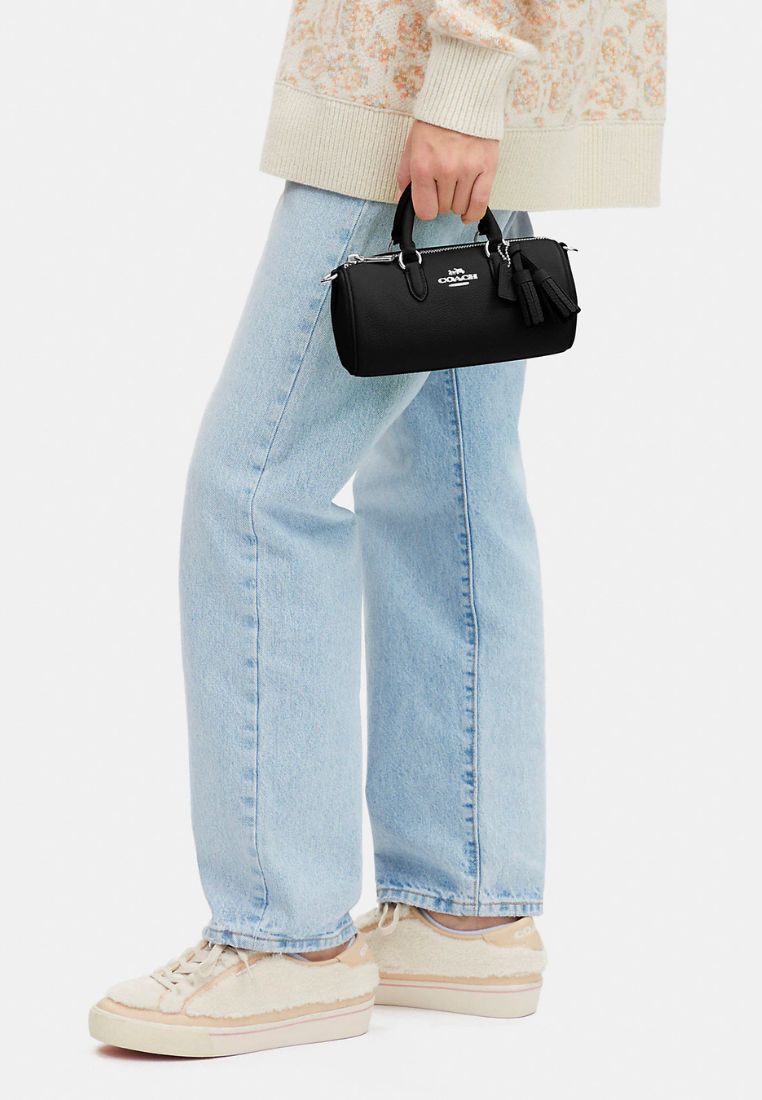- Detachable strap with 59 cm drop for shoulder or crossbody wear