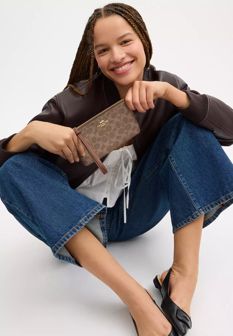 Large Corner Zip Wristlet In Signature Canvas Gold Tan Brown