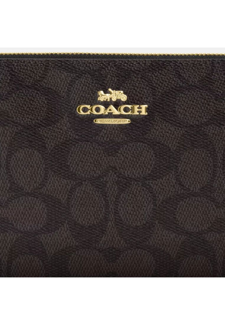 Large Corner Zip Wristlet In Signature Canvas Gold Walnut Black