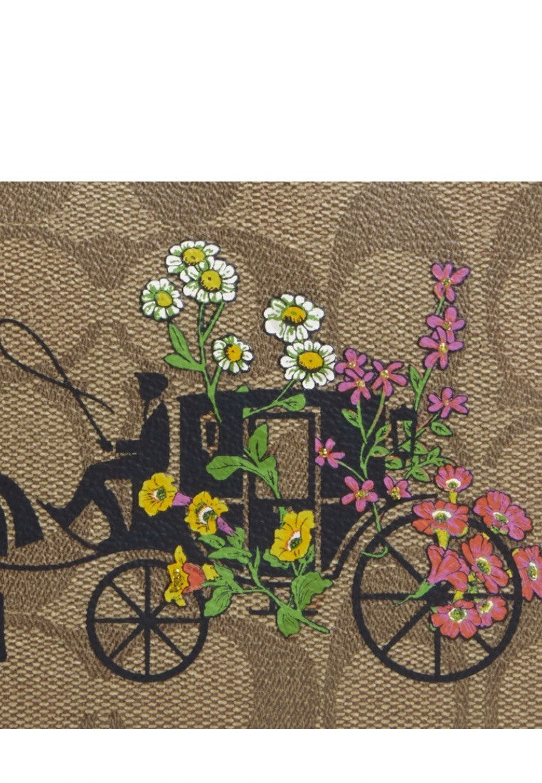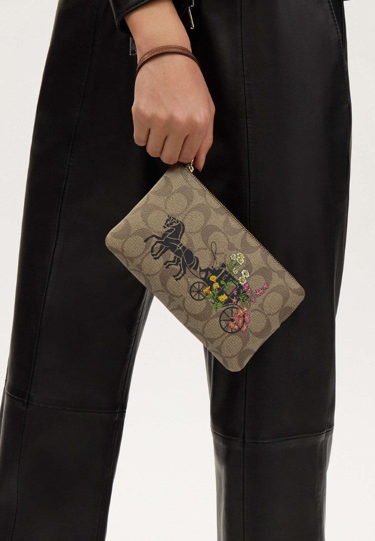 Large Corner Zip Wristlet In Signature Canvas With Floral Horse And Carriage Khaki Multi