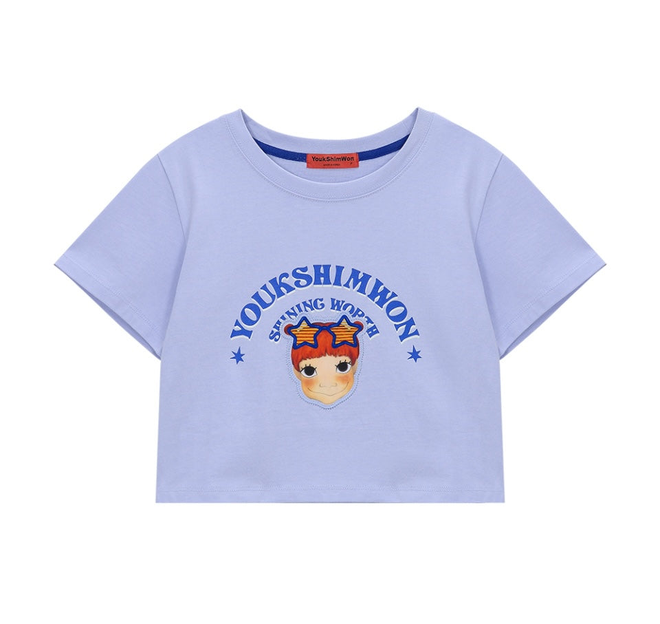 Lettering Crop T-Shirt F Blue Gaeddongi