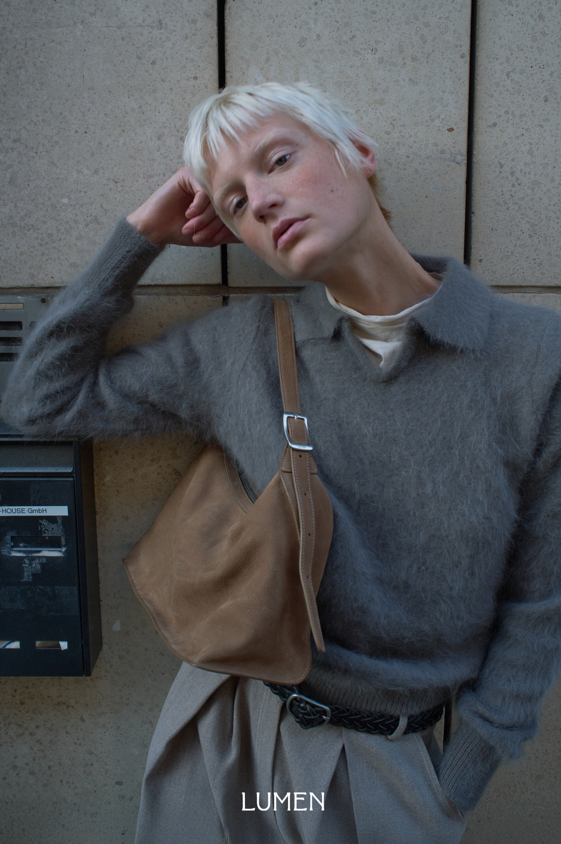 The Lien Woven Leather Belt features a woven texture created by tightly weaving the leather. Crafted from Italian cowhide, the belt is hand-woven, strand by strand, and finished with plain leather, creating a distinctive silhouette reminiscent of a work of art. The leather and crafting method used in the belt naturally reveal the material's inherent depth and suppleness over time. The subtle sheen of the burnished nickel buckle adds a touch of sophistication to the simple design, elevating the piece to a higher level of perfection. Available in two colors, Organ Brown and Soft Black, the buckle-less design allows for a versatile fit regardless of size.