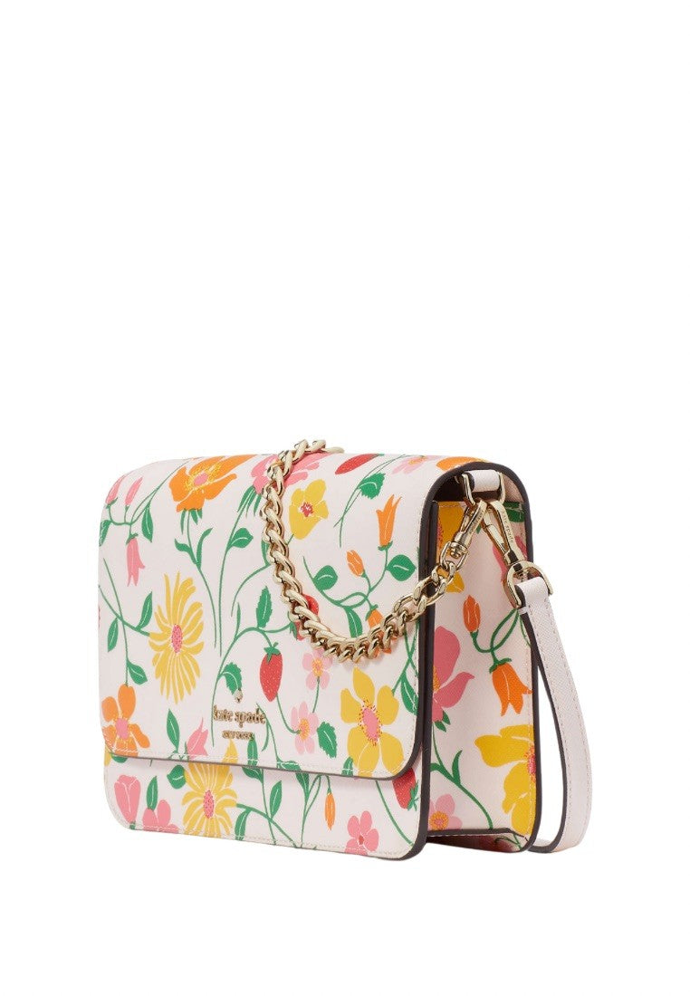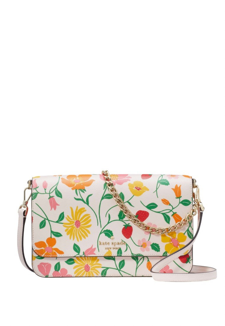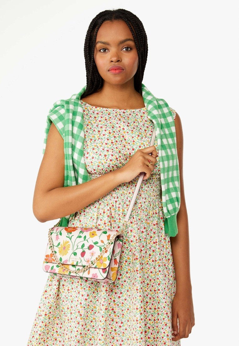 Madison Strawberry Garden Printed Flap Convertible Crossbody Pink Multi