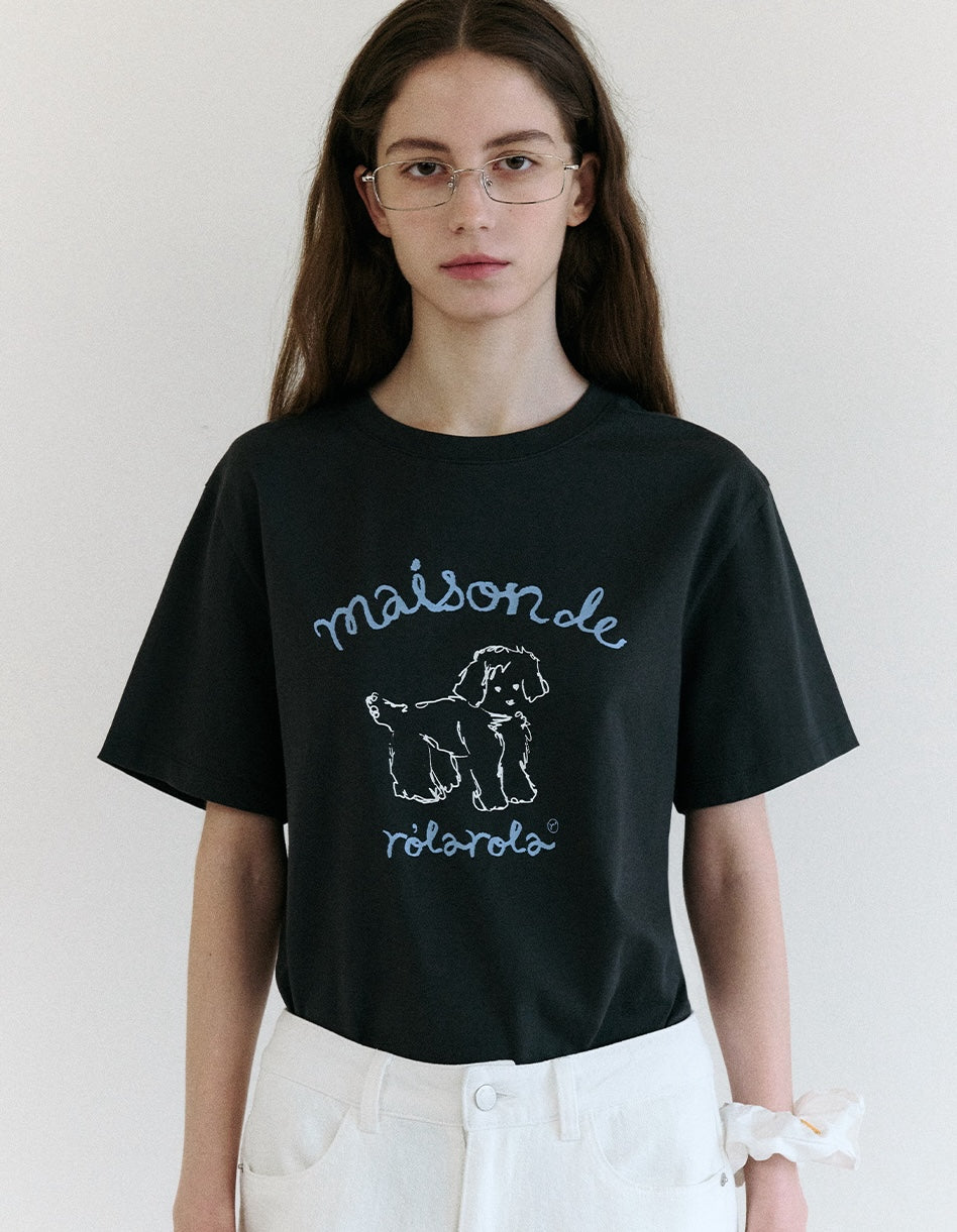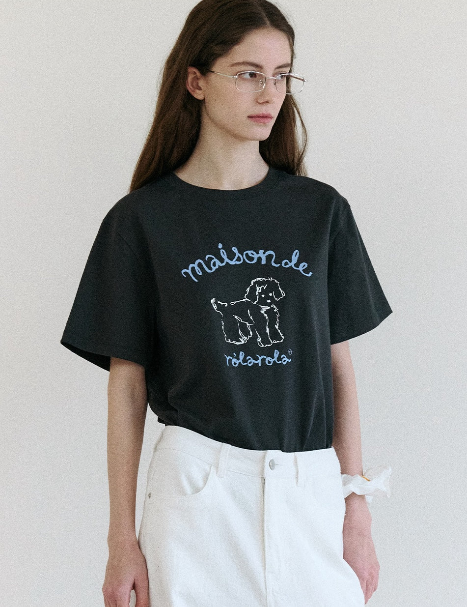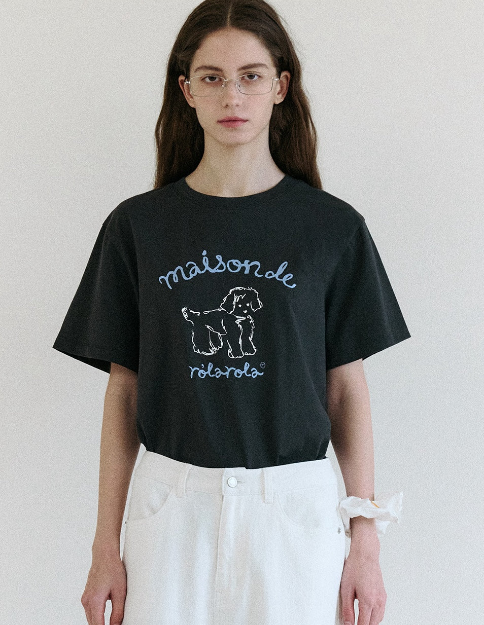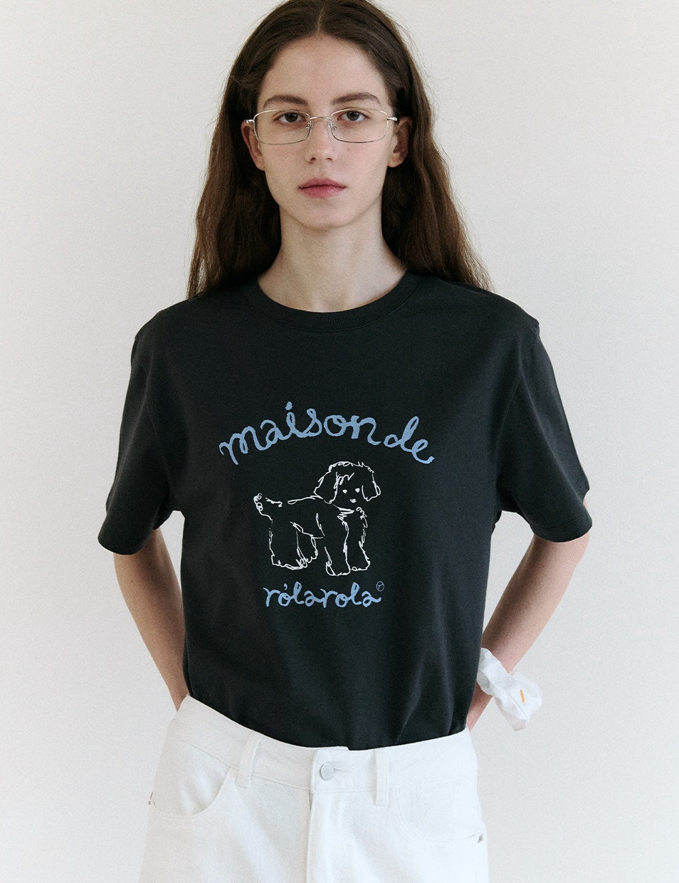 Maison Rola Puppy Friends T-Shirt Charcoal
