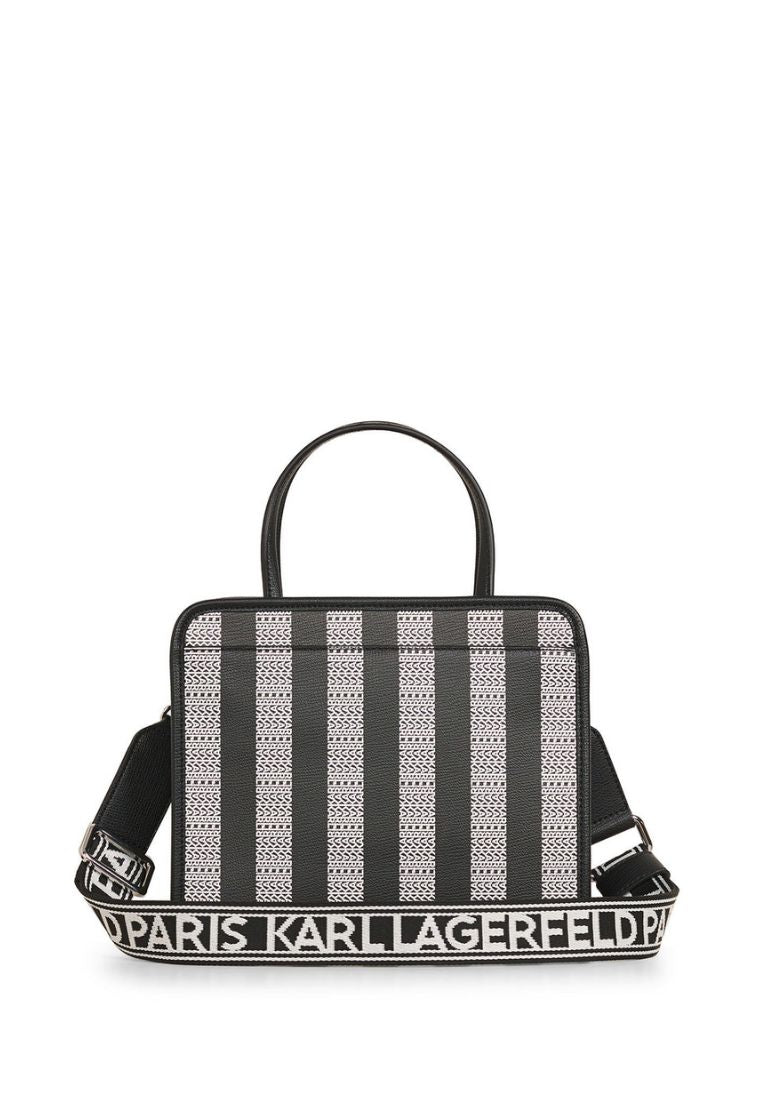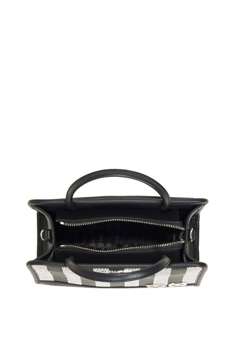 Maybelle Contrast Stripe Top Handle Satchel Black White