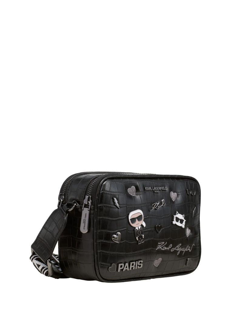 Maybelle Pins Camera Crossbody Black