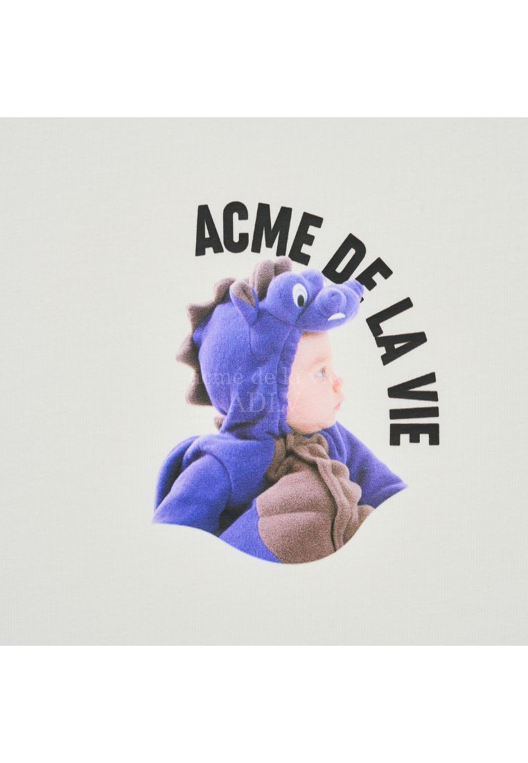 Mini Baby Face Purple Dinosaur Short Sleeve T-Shirt Cream