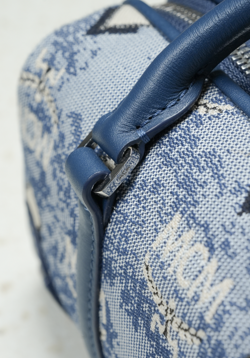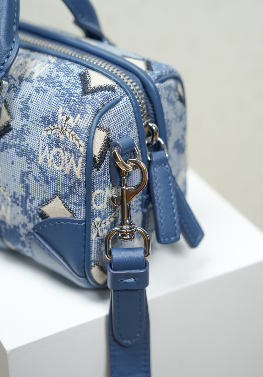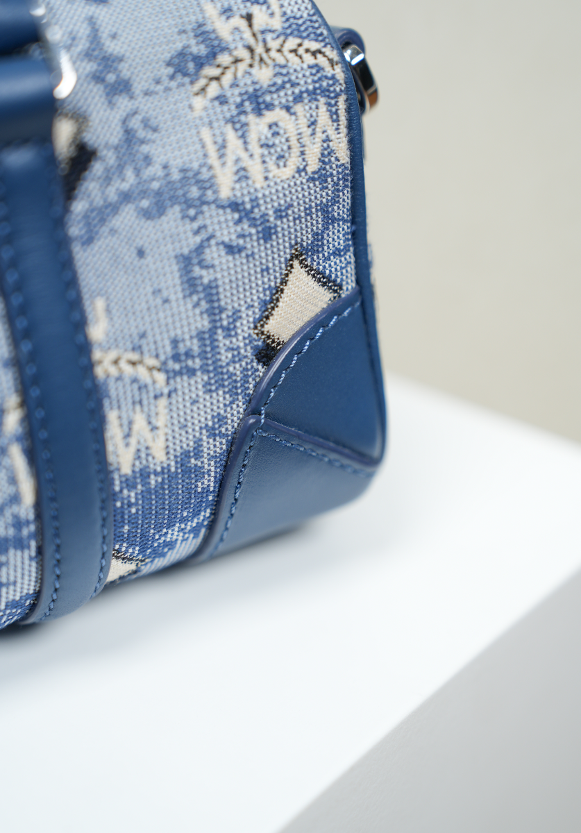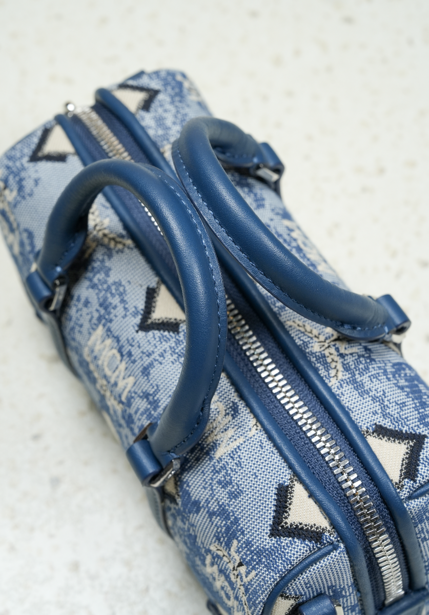 Mini Boston Bag in Vintage Jacquard Monogram Blue