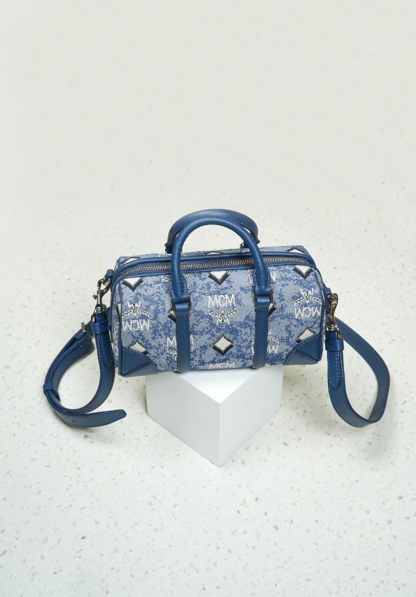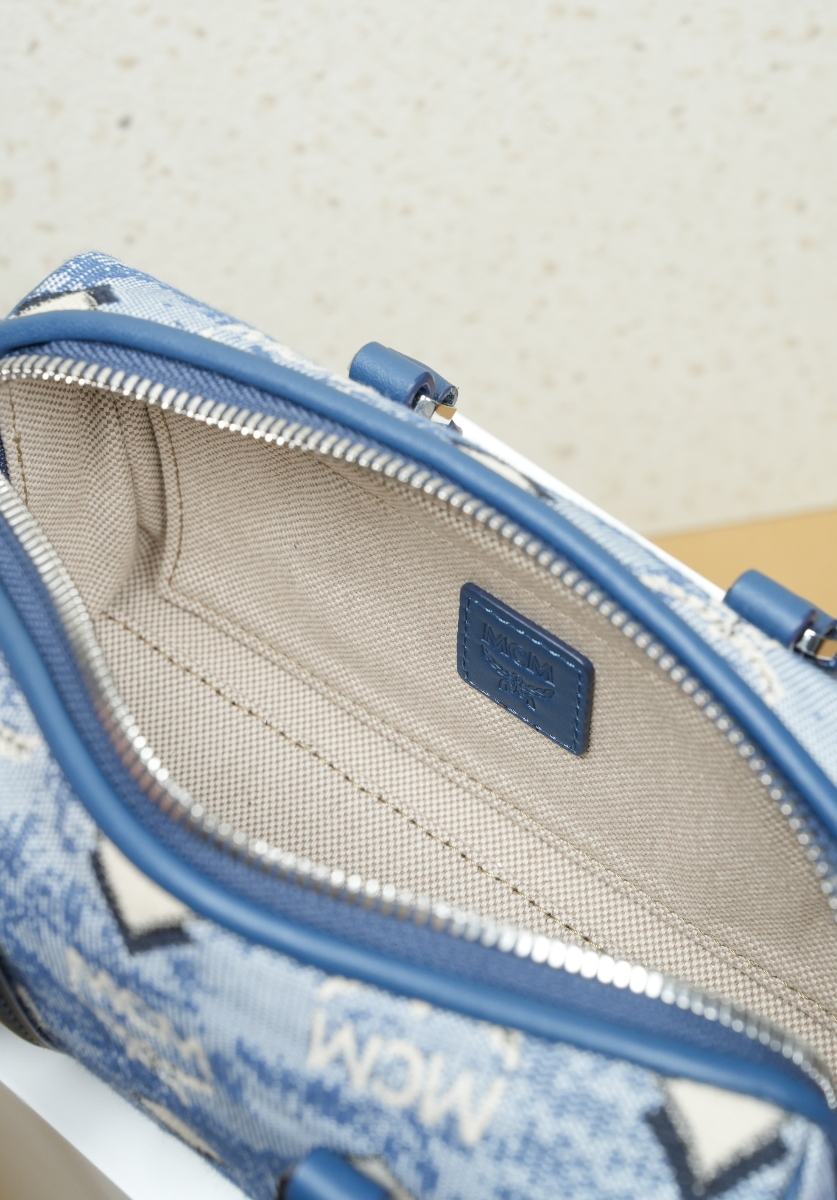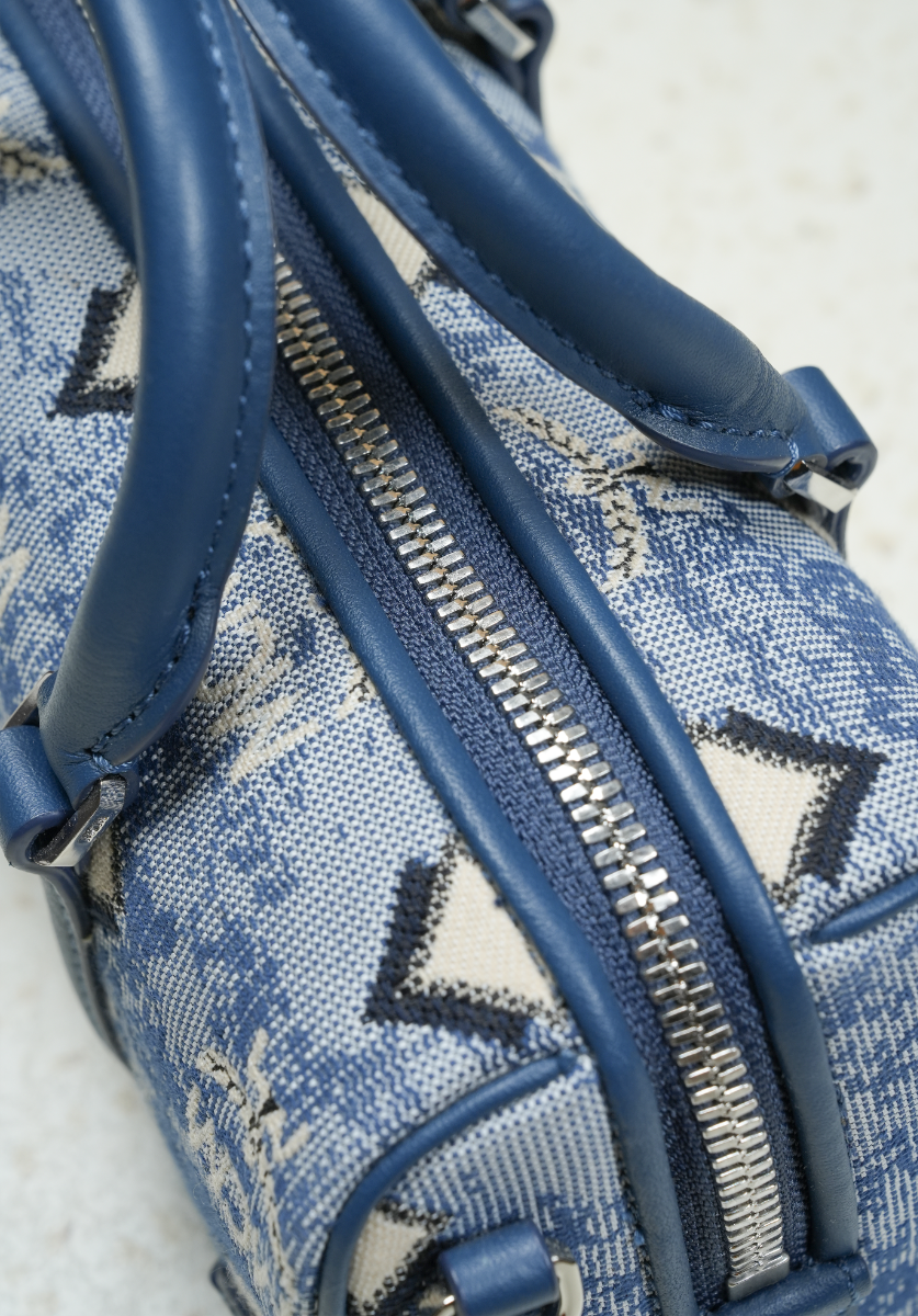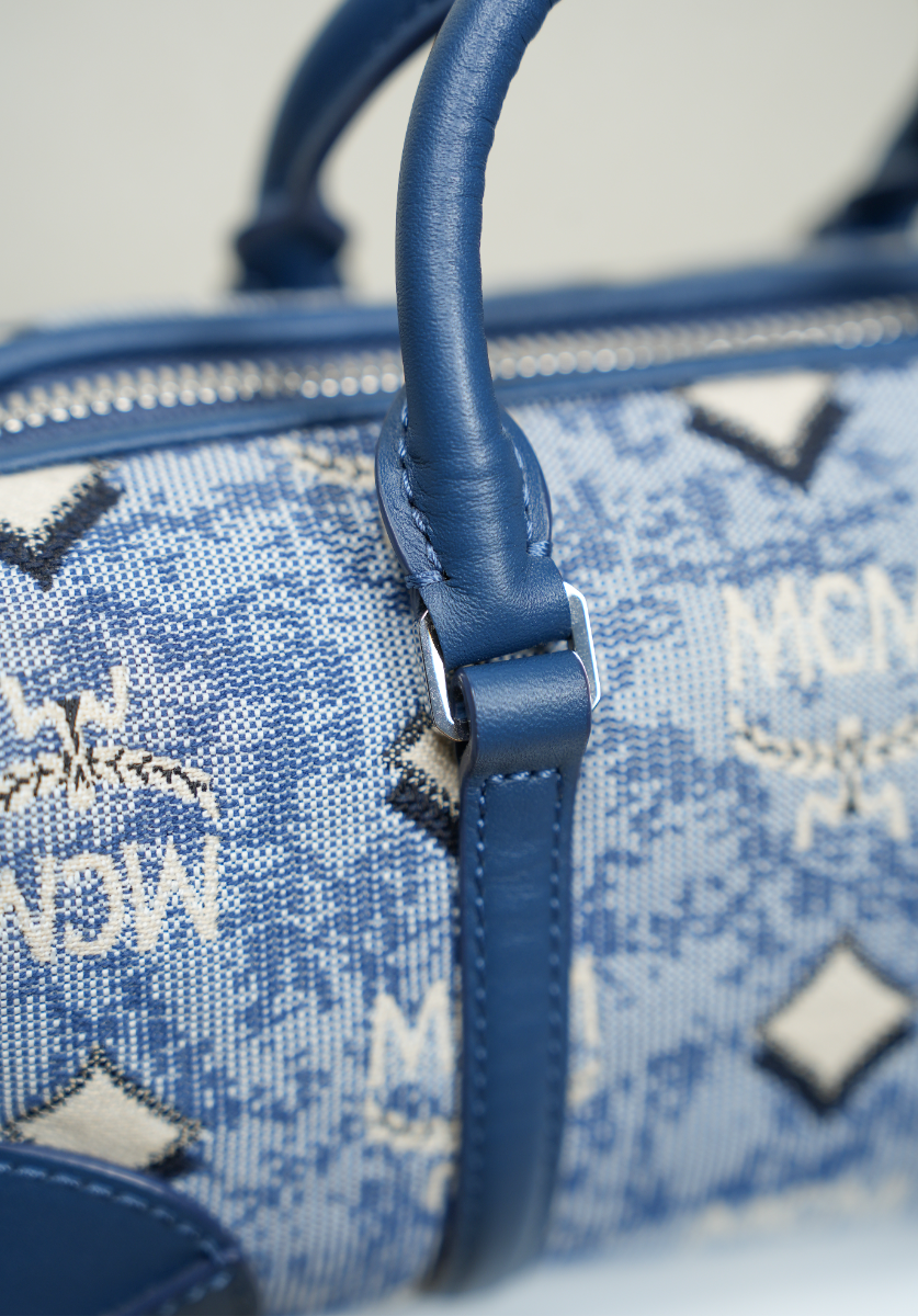 Mini Boston Bag in Vintage Jacquard Monogram Blue
