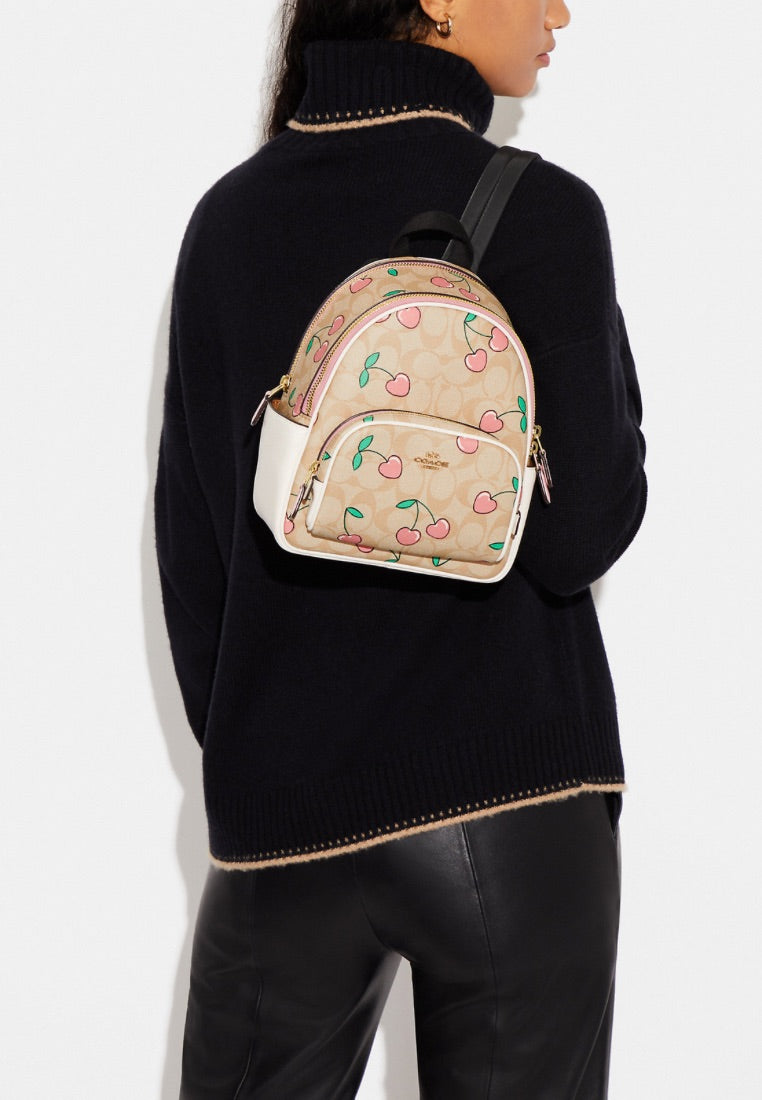 Mini Court Backpack In Signature Canvas With Heart Cherry Print Light Khaki Multi