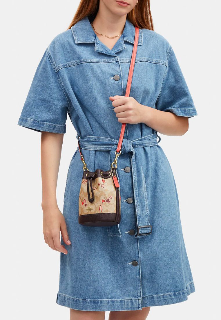 Mini Dempsey Bucket Bag In Signature Canvas With Heart And Star Print