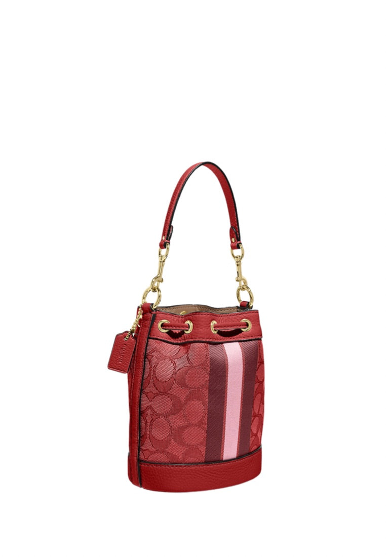 Mini Dempsey Bucket Bag In Signature Jacquard With Stripe And Coach Patch Red Apple Multi