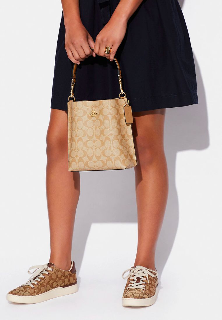 Mollie Bucket Bag 22 In Signature Canvas LT Saddle