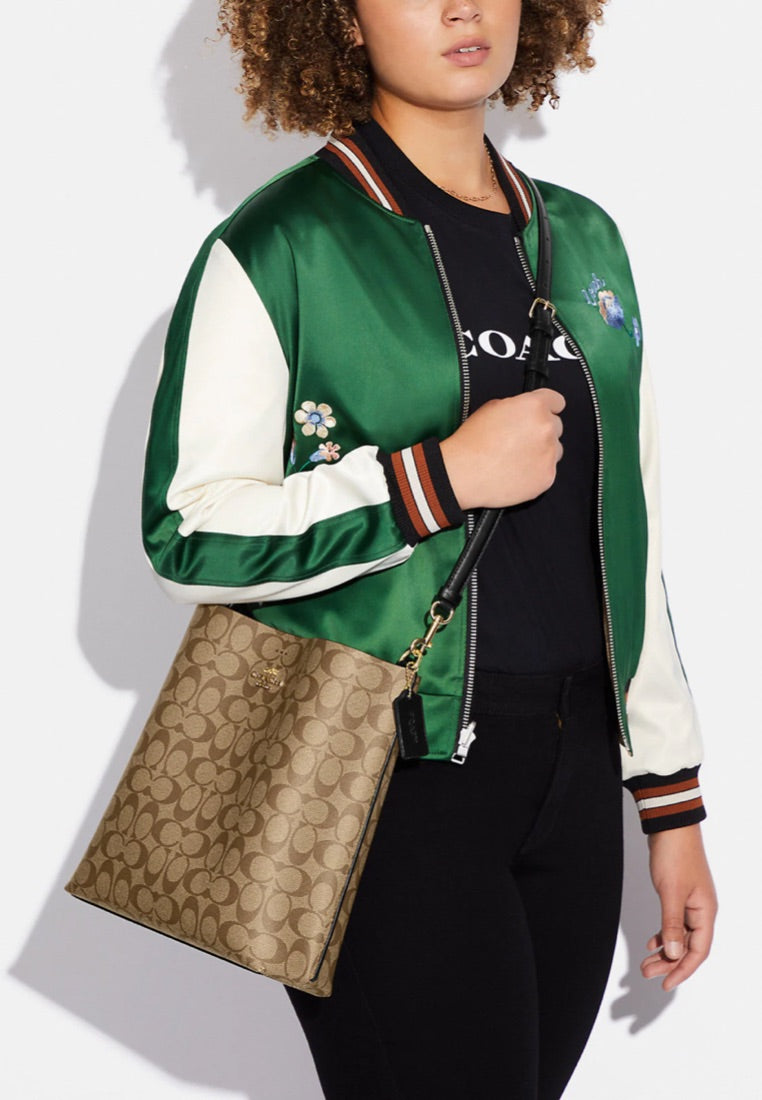 Mollie Bucket Bag In Signature Canvas Khaki Black