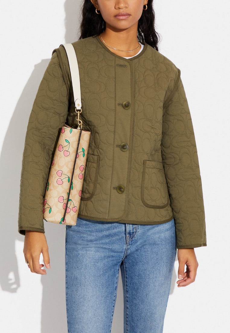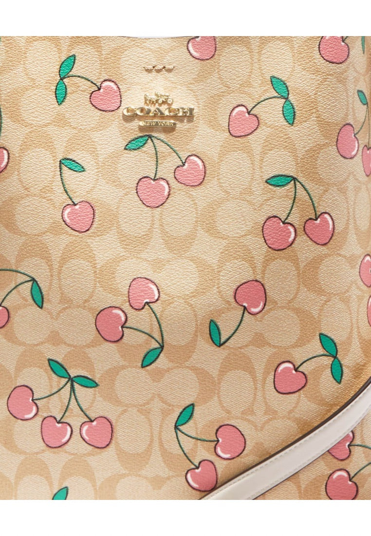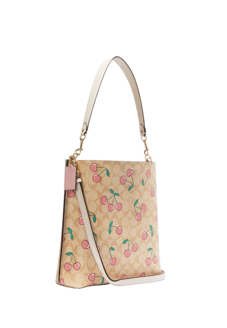 Mollie Bucket Bag In Signature Canvas With Heart Cherry Print Light Khaki Multi