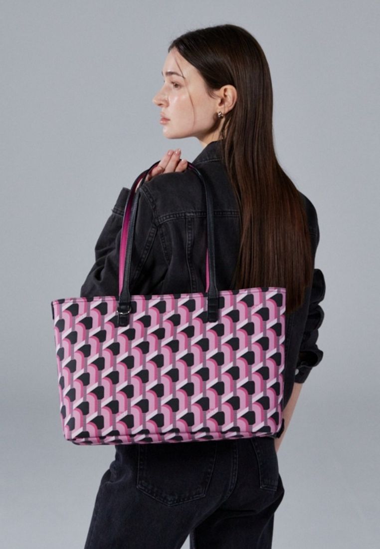 - The shape reminiscent of a shopping bag and the monogram pattern,