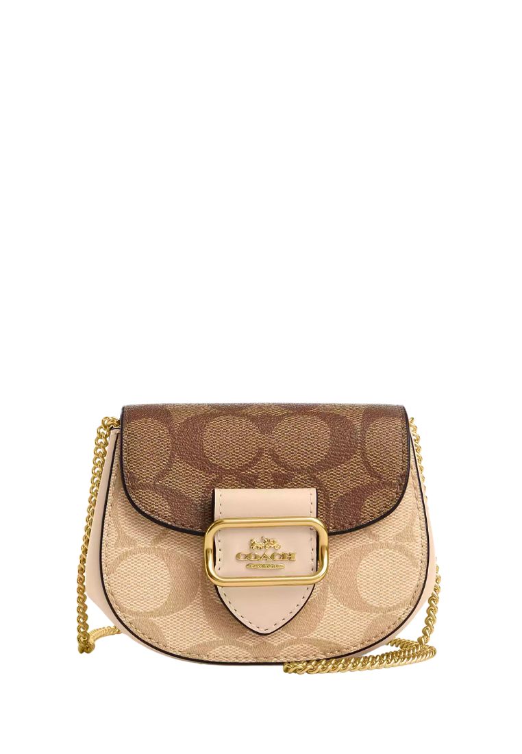 Morgan Card Case On A Chain In Blocked Signature Canvas Light Khaki