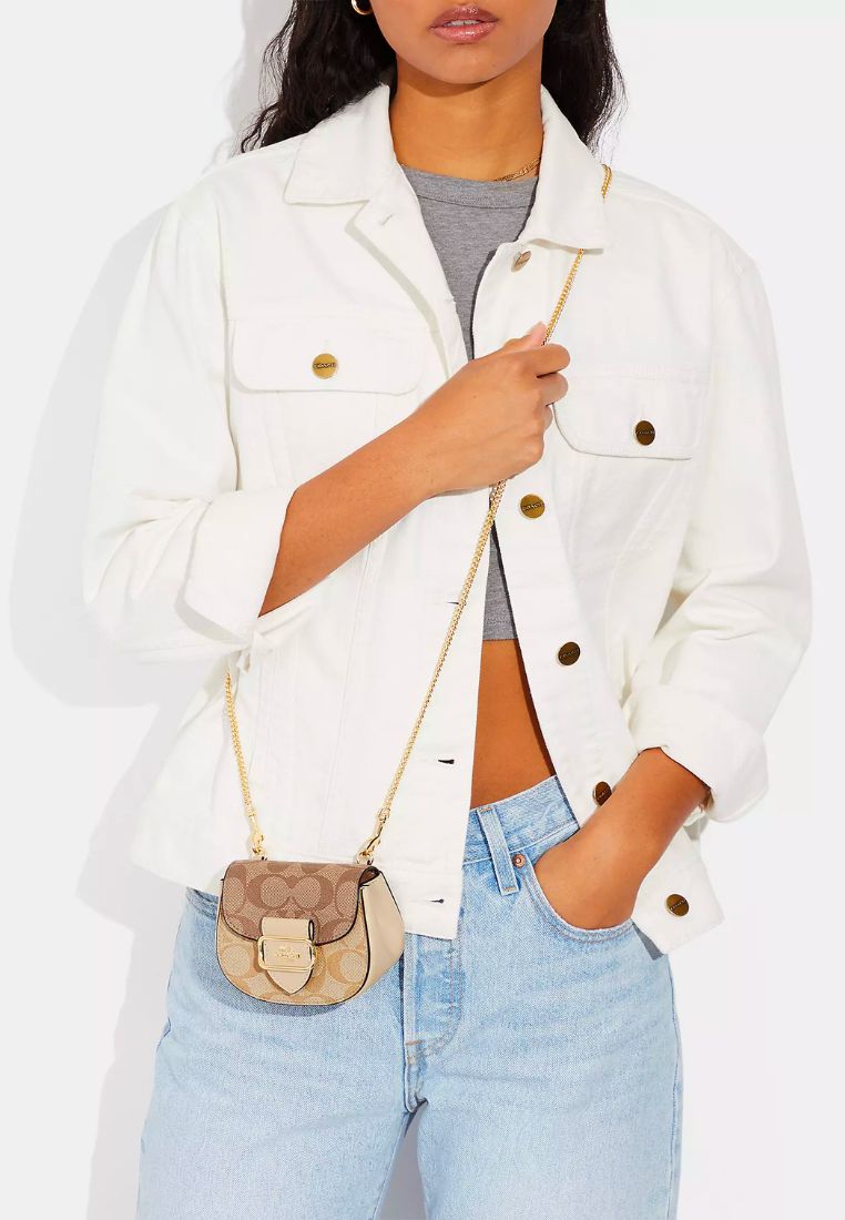 - Detachable chain strap with 59 cm drop for shoulder or crossbody wear