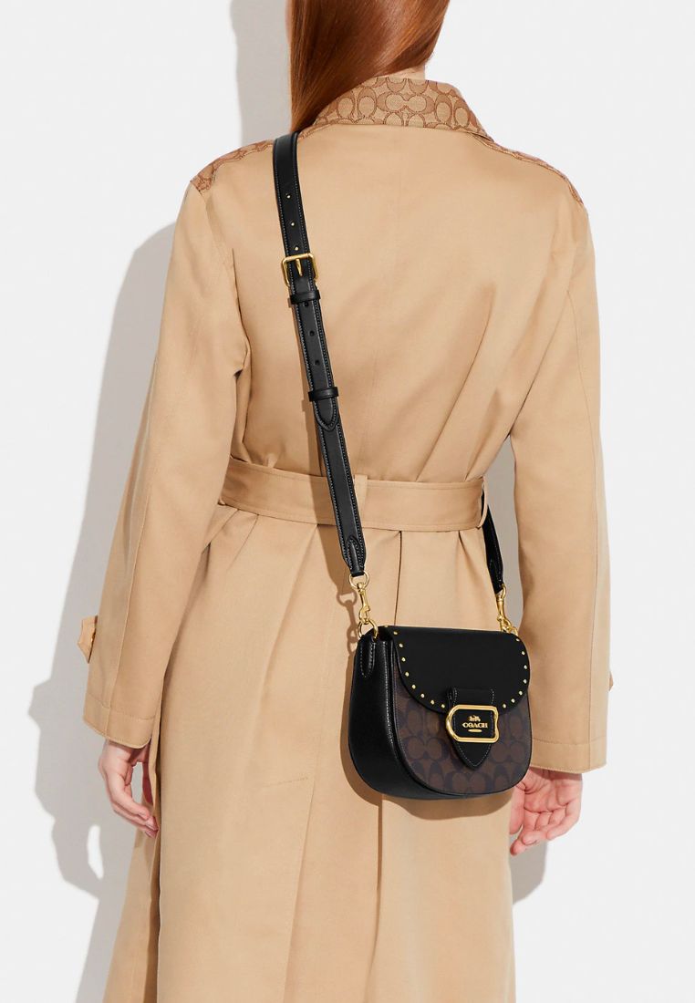 Morgan Saddle Bag In Colorblock Signature Canvas With Rivets Brown Black Multi