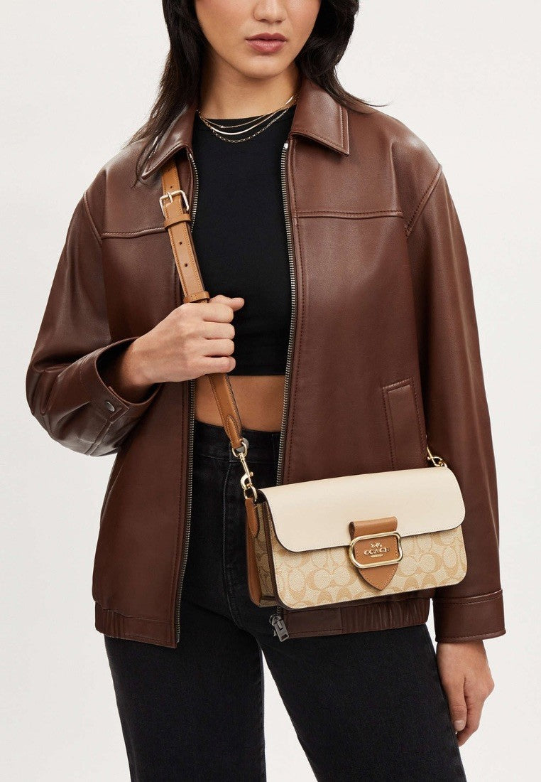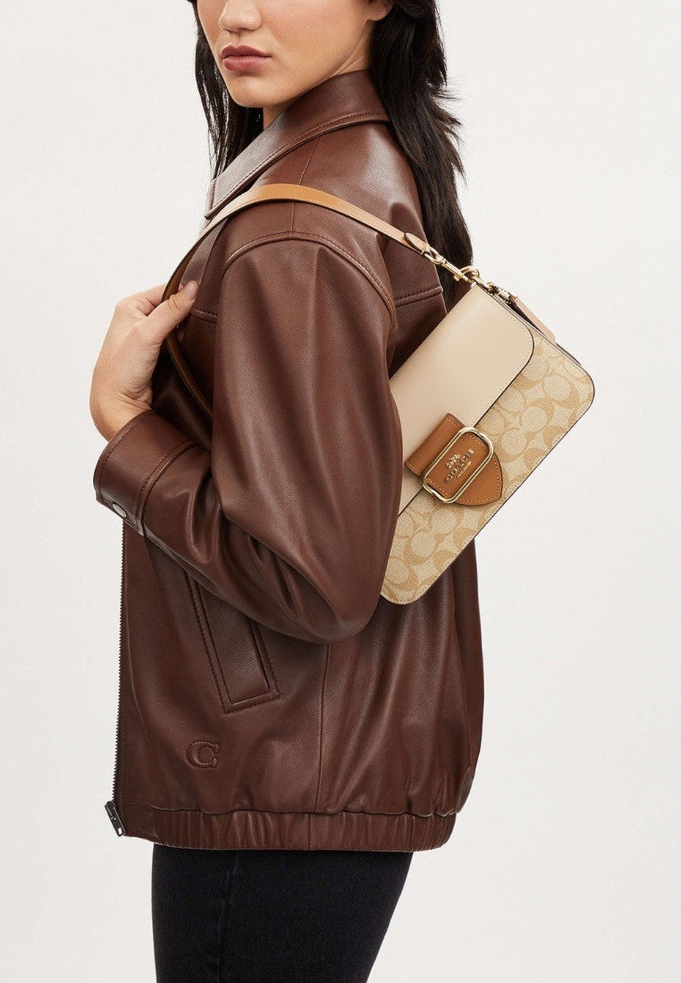 Morgan Shoulder Bag In Blocked Signature Canvas Light Khaki Multi
