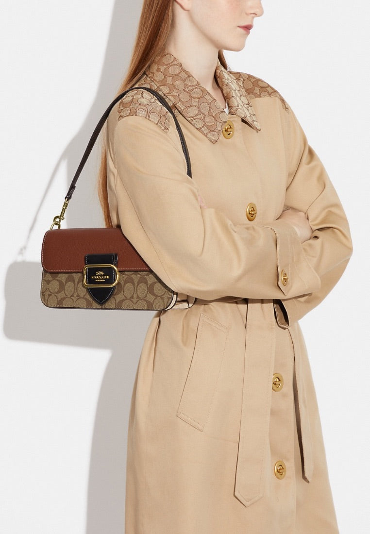 Morgan Shoulder Bag In Colorblock Signature Canvas Khaki Multi