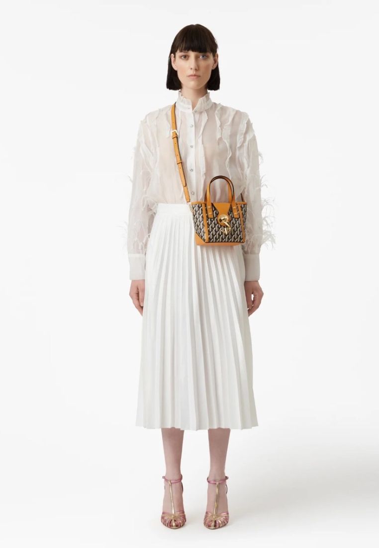 This shopper XS bag version has a leather shoulder strap and roomy interior can easily hold your cell phone, wallet and lipstick.