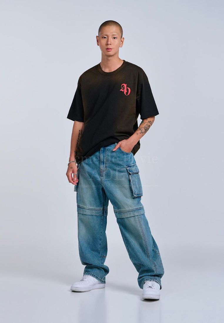 New Symbol Logo Spray Washing T-Shirt Black